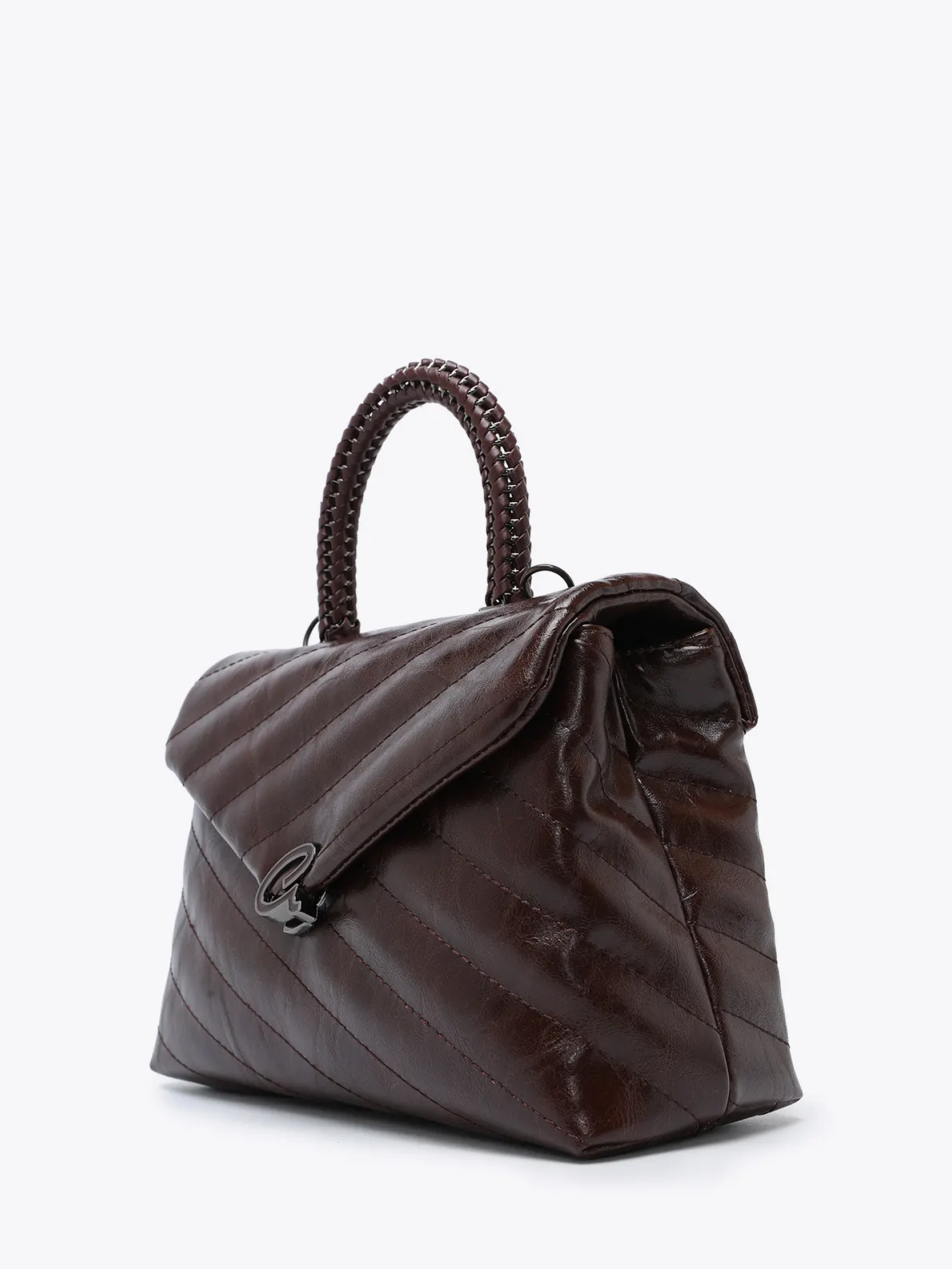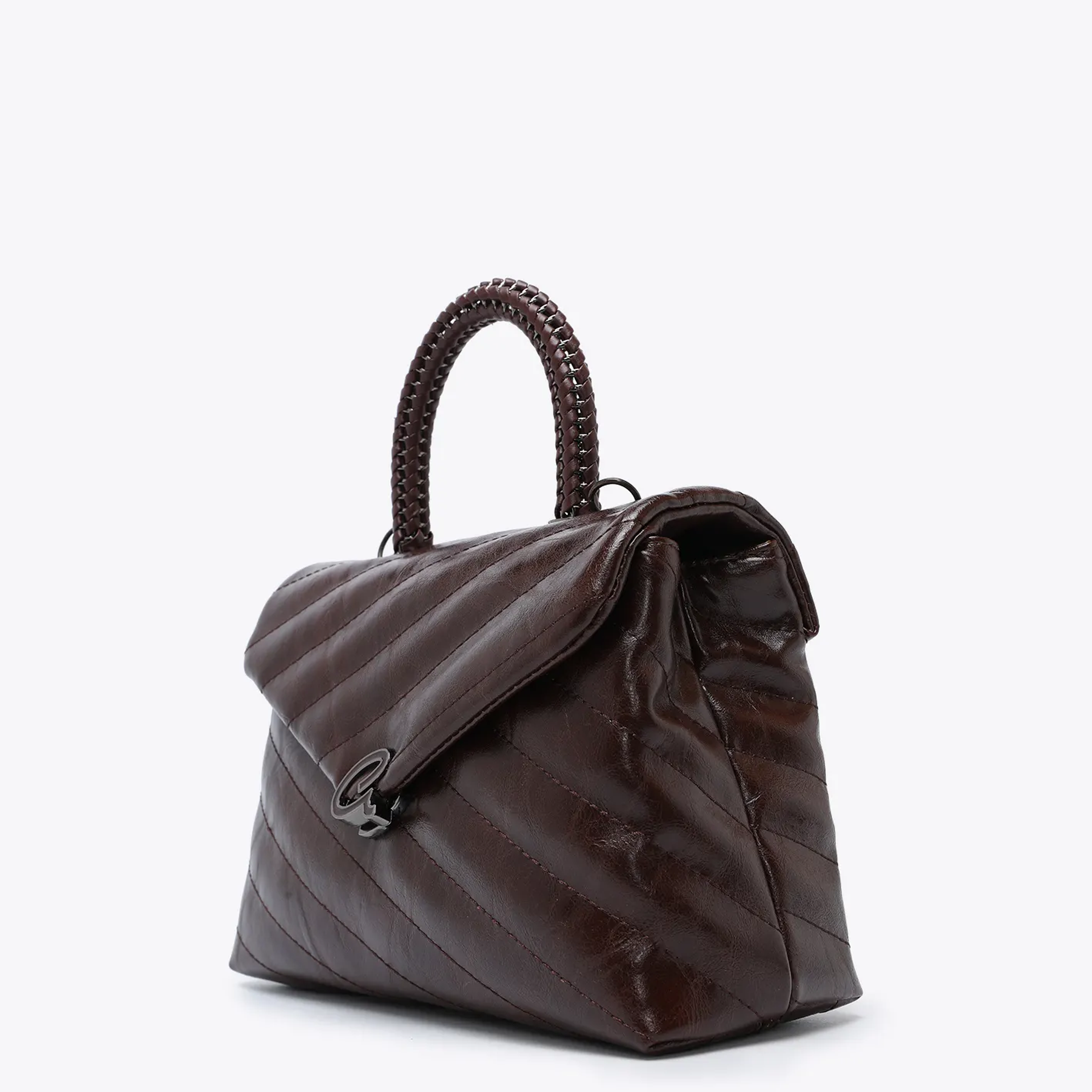 Bolsa transversal feminina Valeria, feita em couro sintético costurado com um toque macio e acolchoado. O interior é dividido em dois compartimentos e contém um bolso aberto para organizar pequenos itens. Possui uma alça adicional em couro sintético para segurar como uma mão, enquanto a corrente pode ser removida. Fecha com um elemento metálico em forma de "a". Uma bolsa muito bonita, que combina facilmente com qualquer look. Cor Castanha