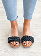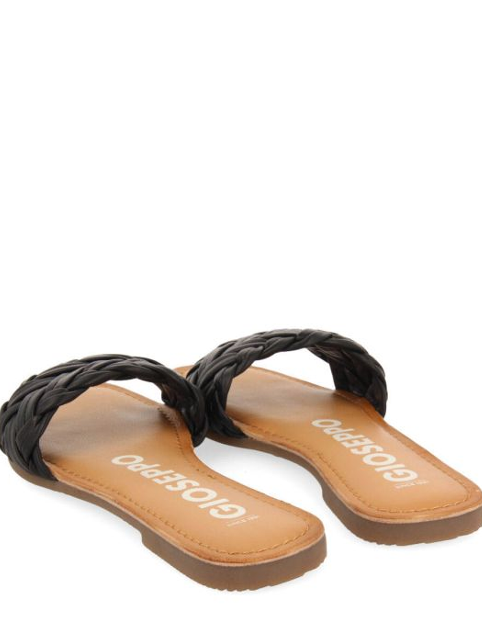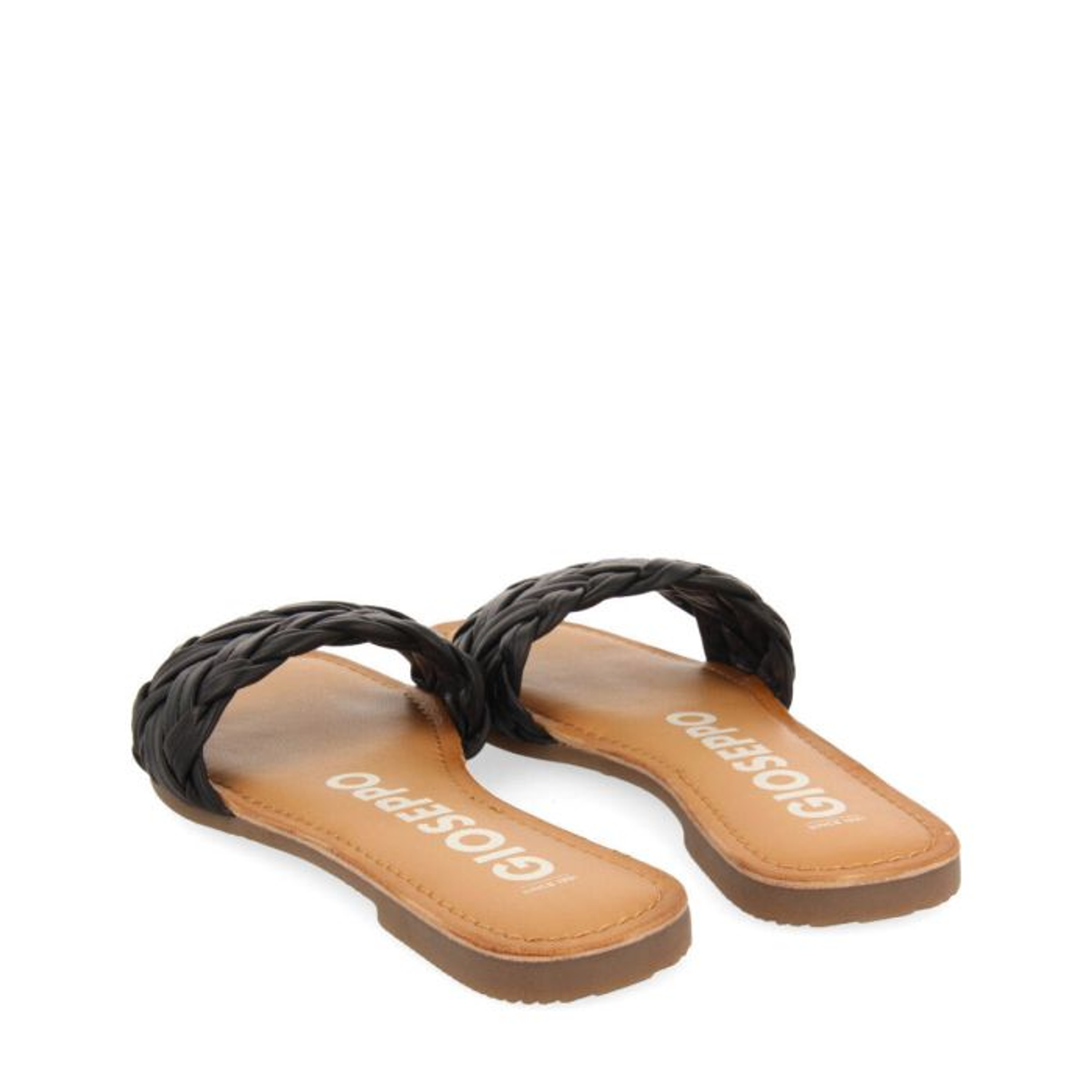 Sandálias rasas com pala trançada em preto. Palmilha de pele
