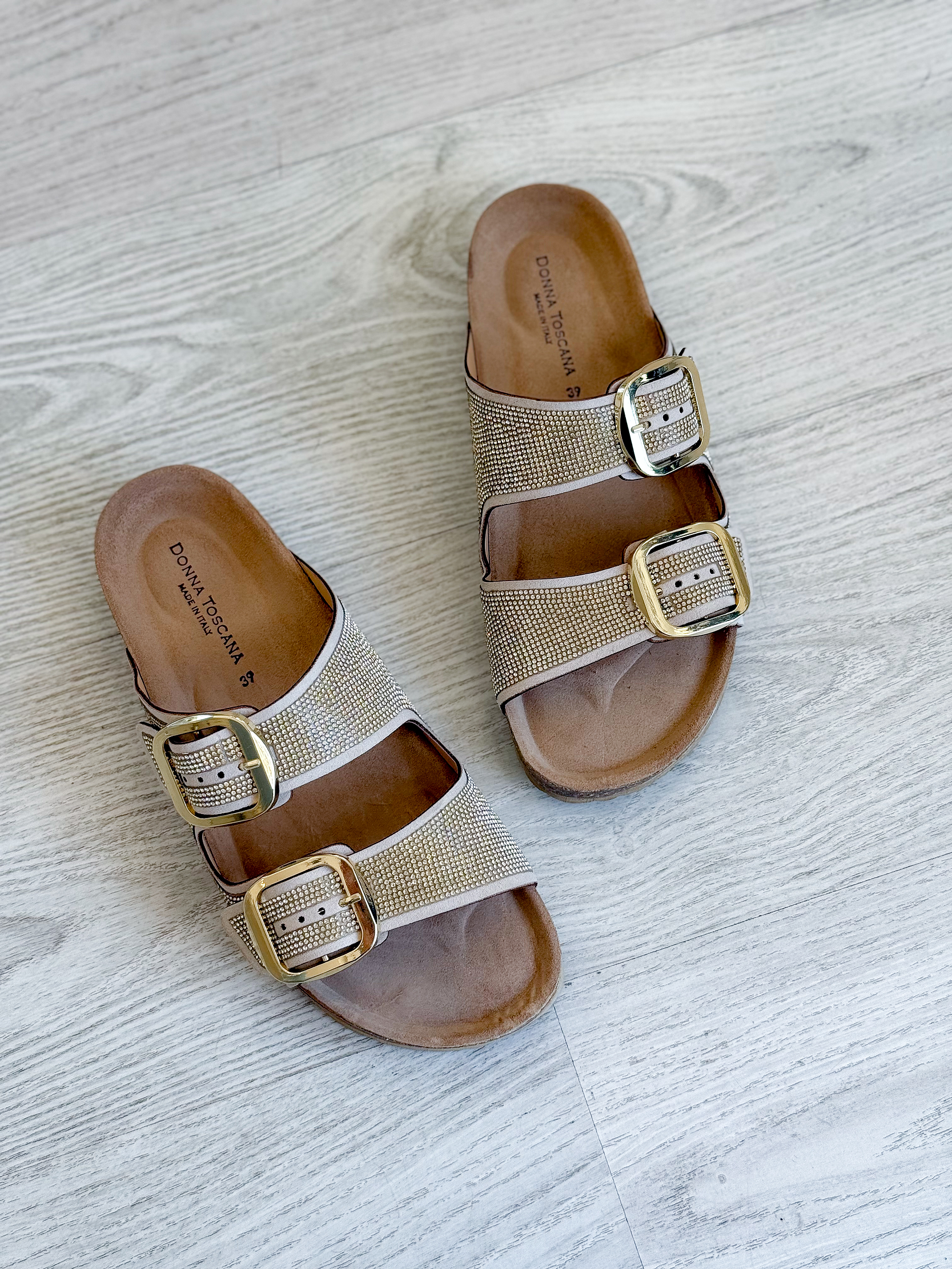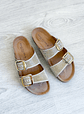 Chinelo em pele com Fivelas ajustáveis e brilhantes