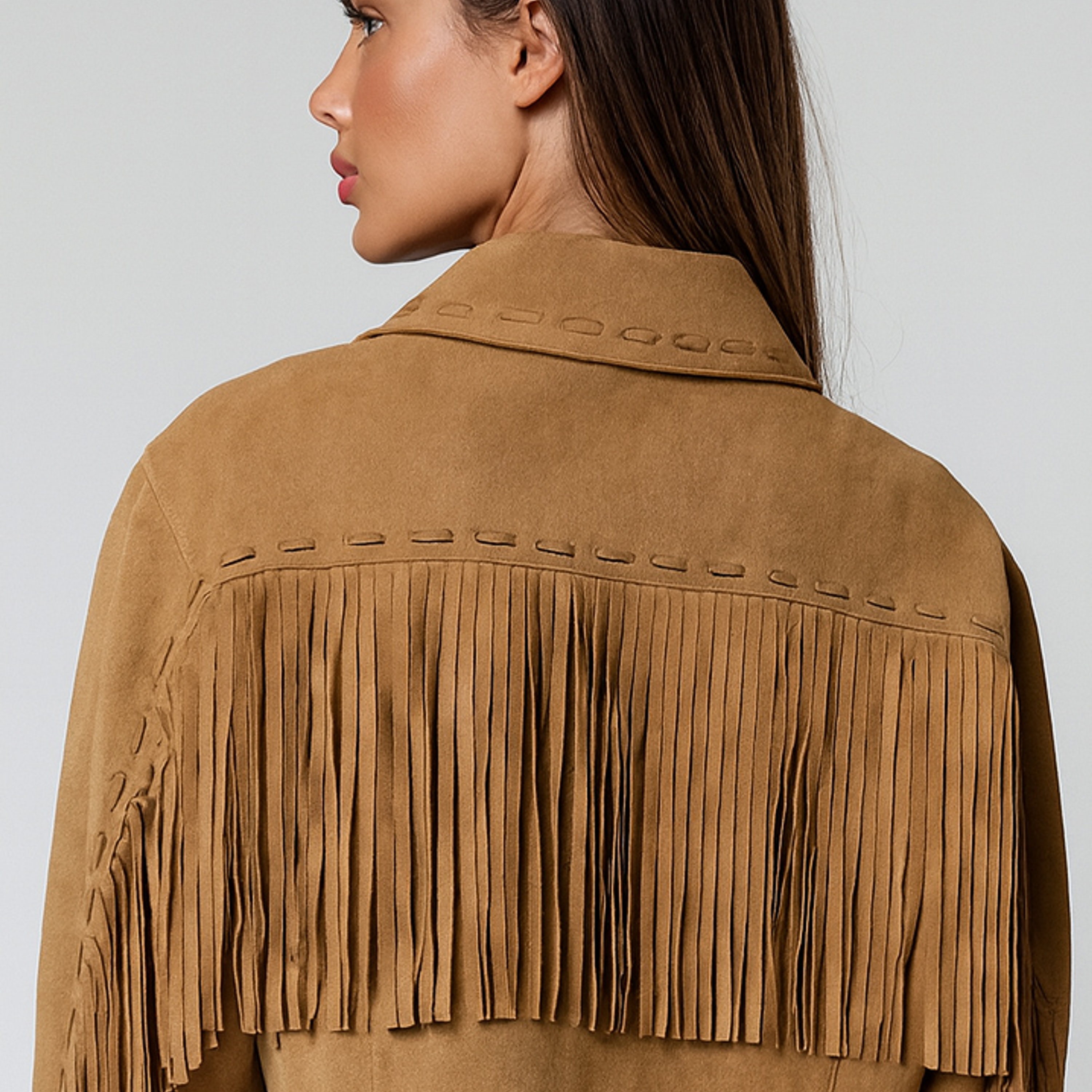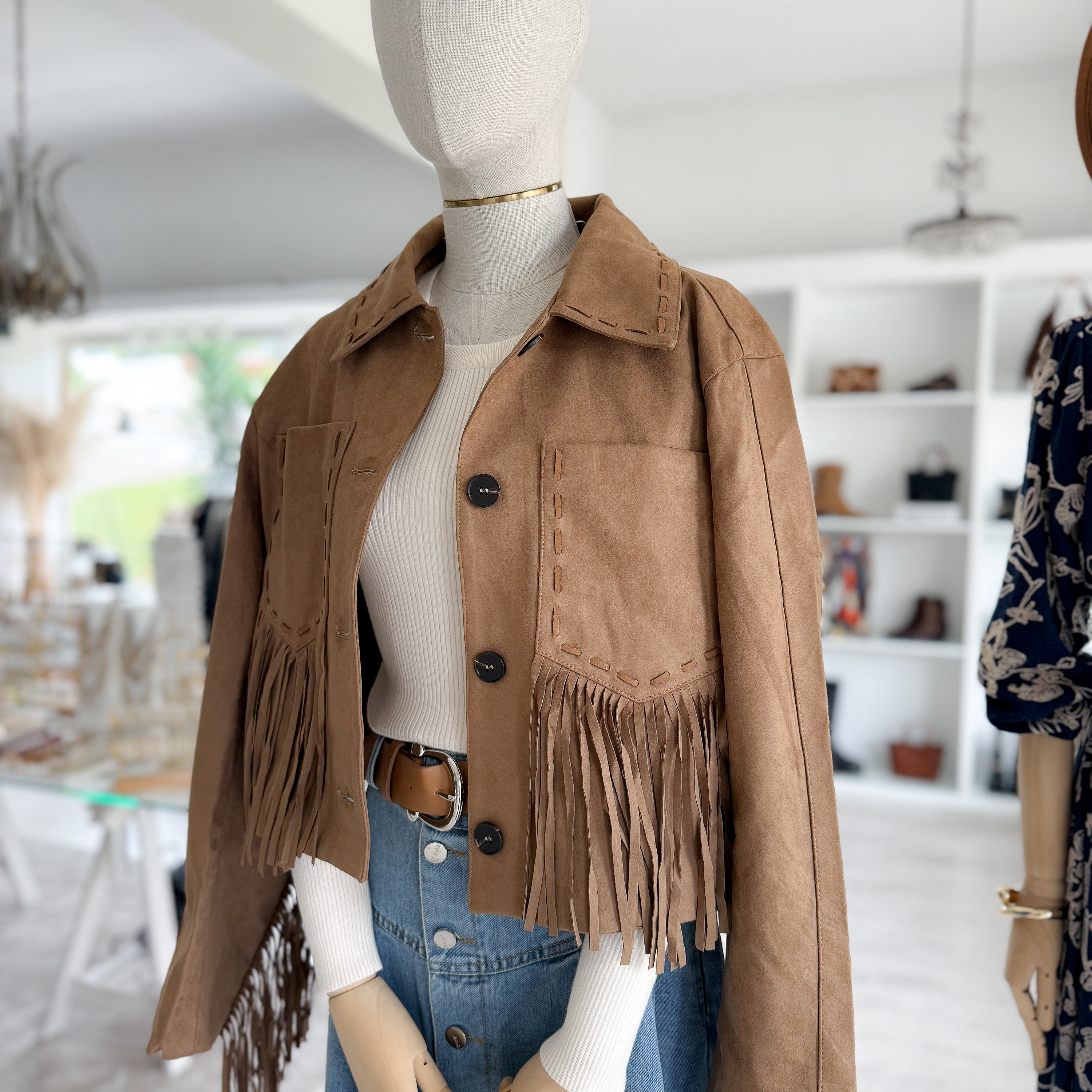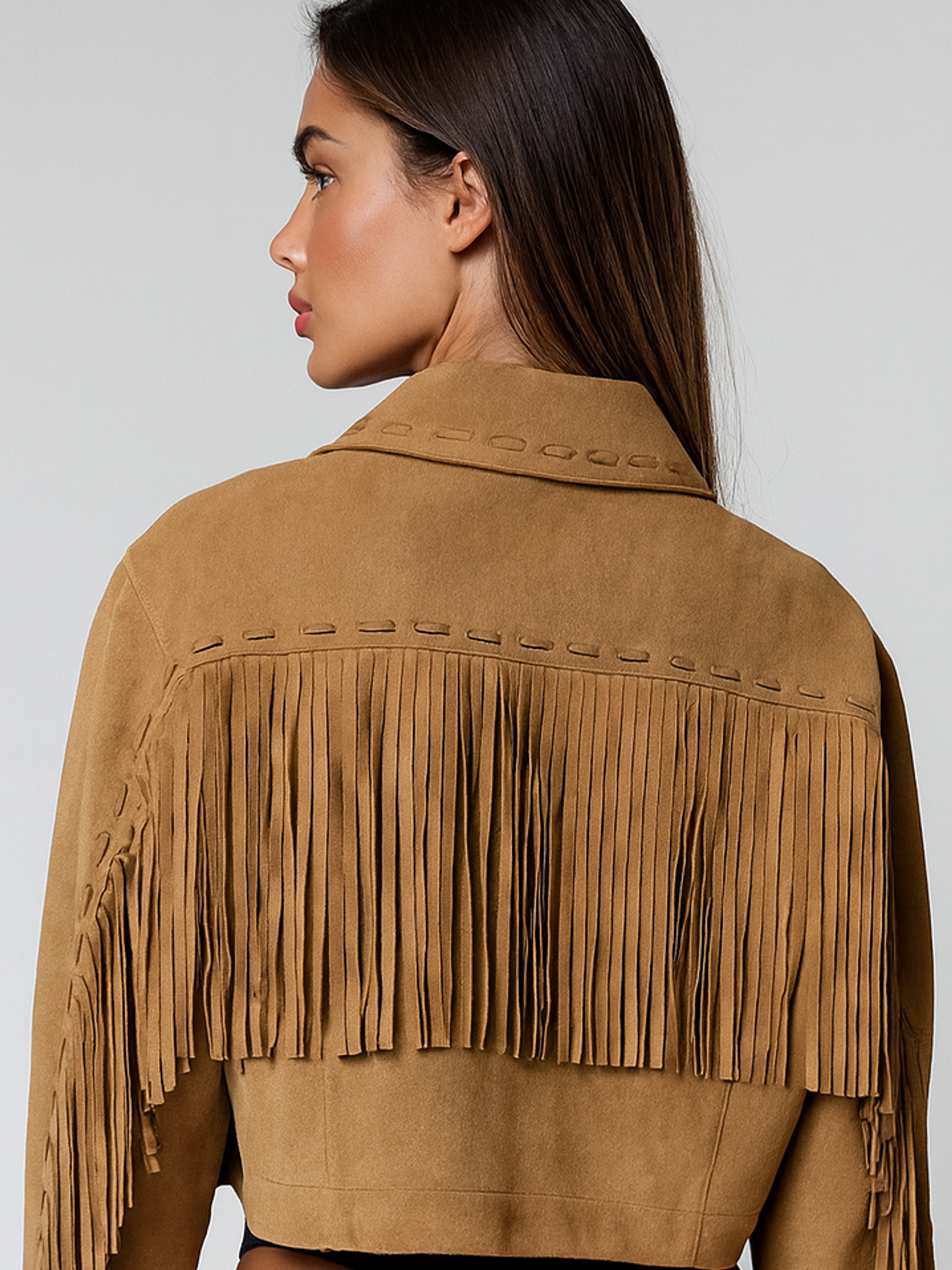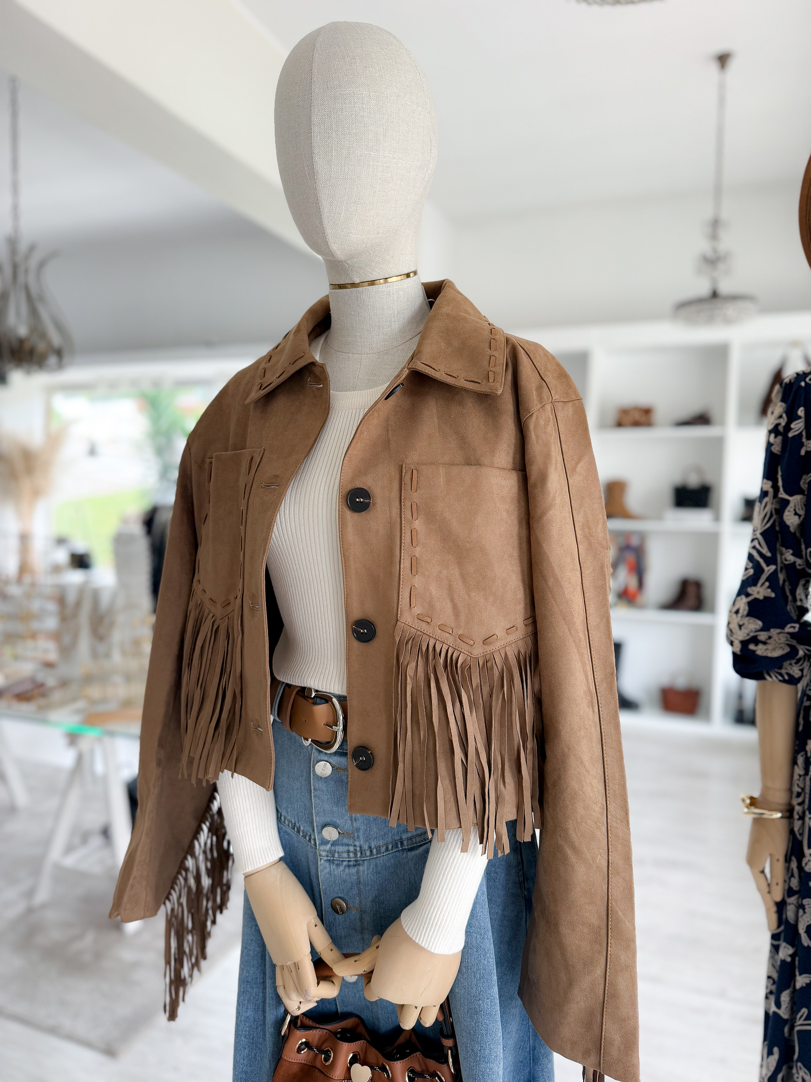 Casaco em Material tipo camurça e franjas