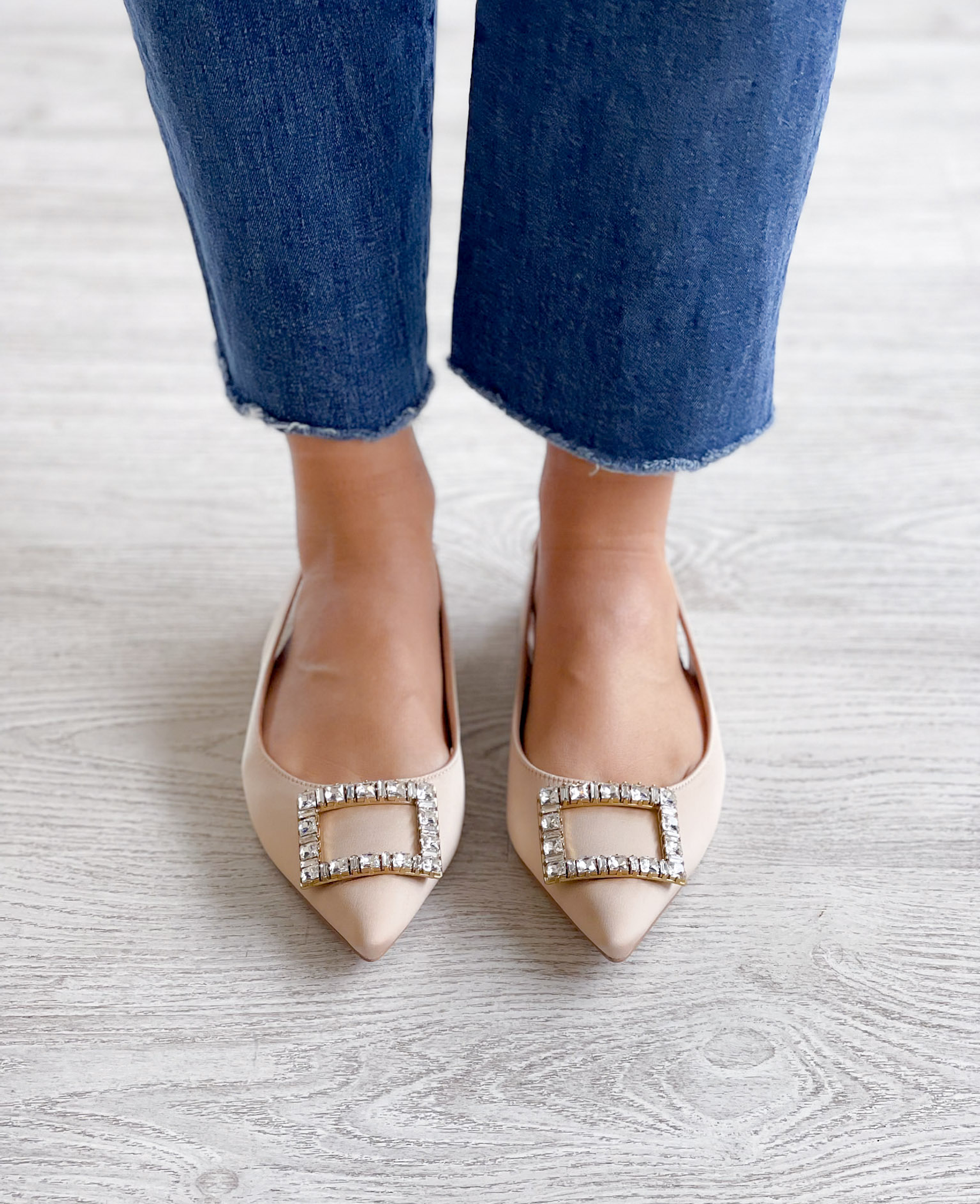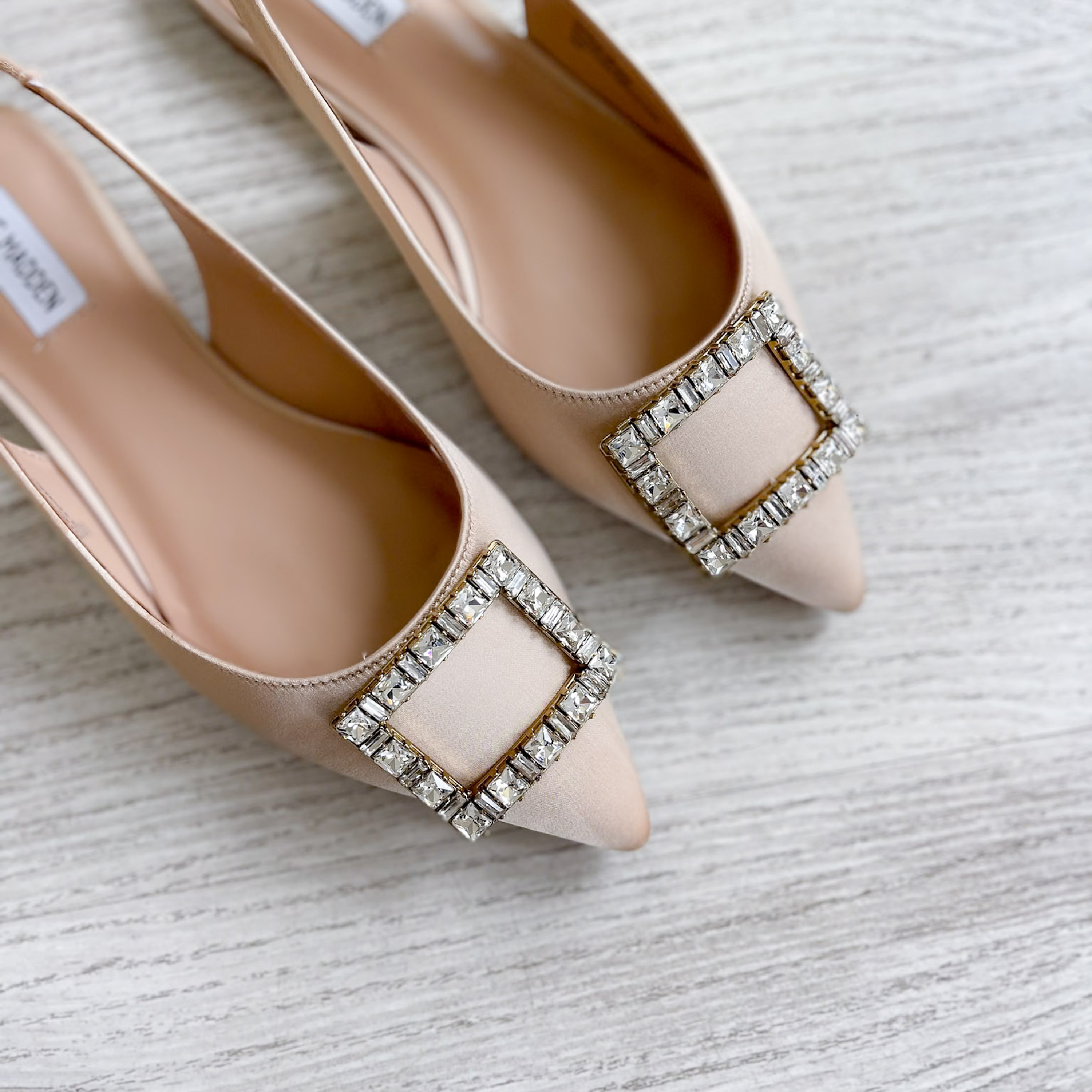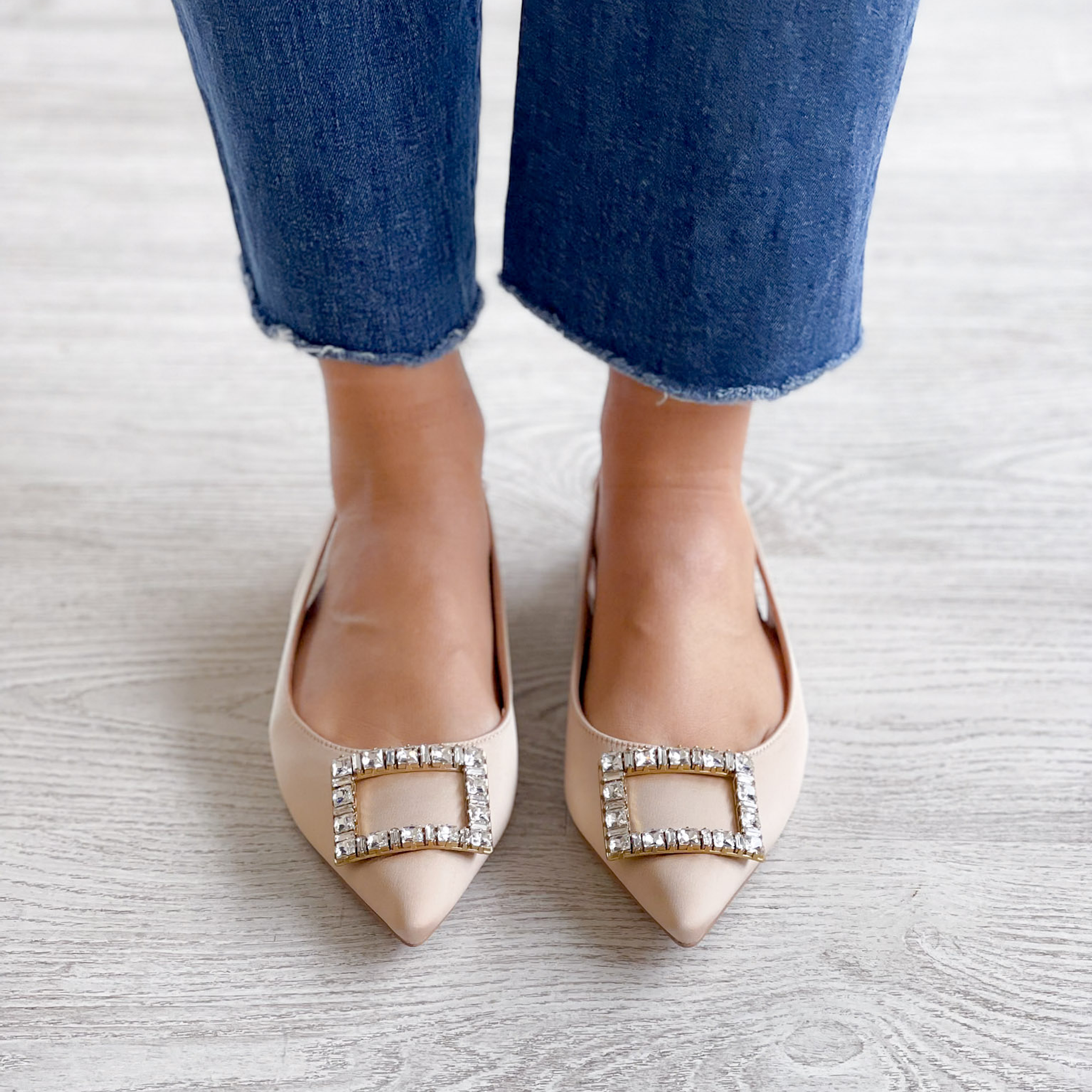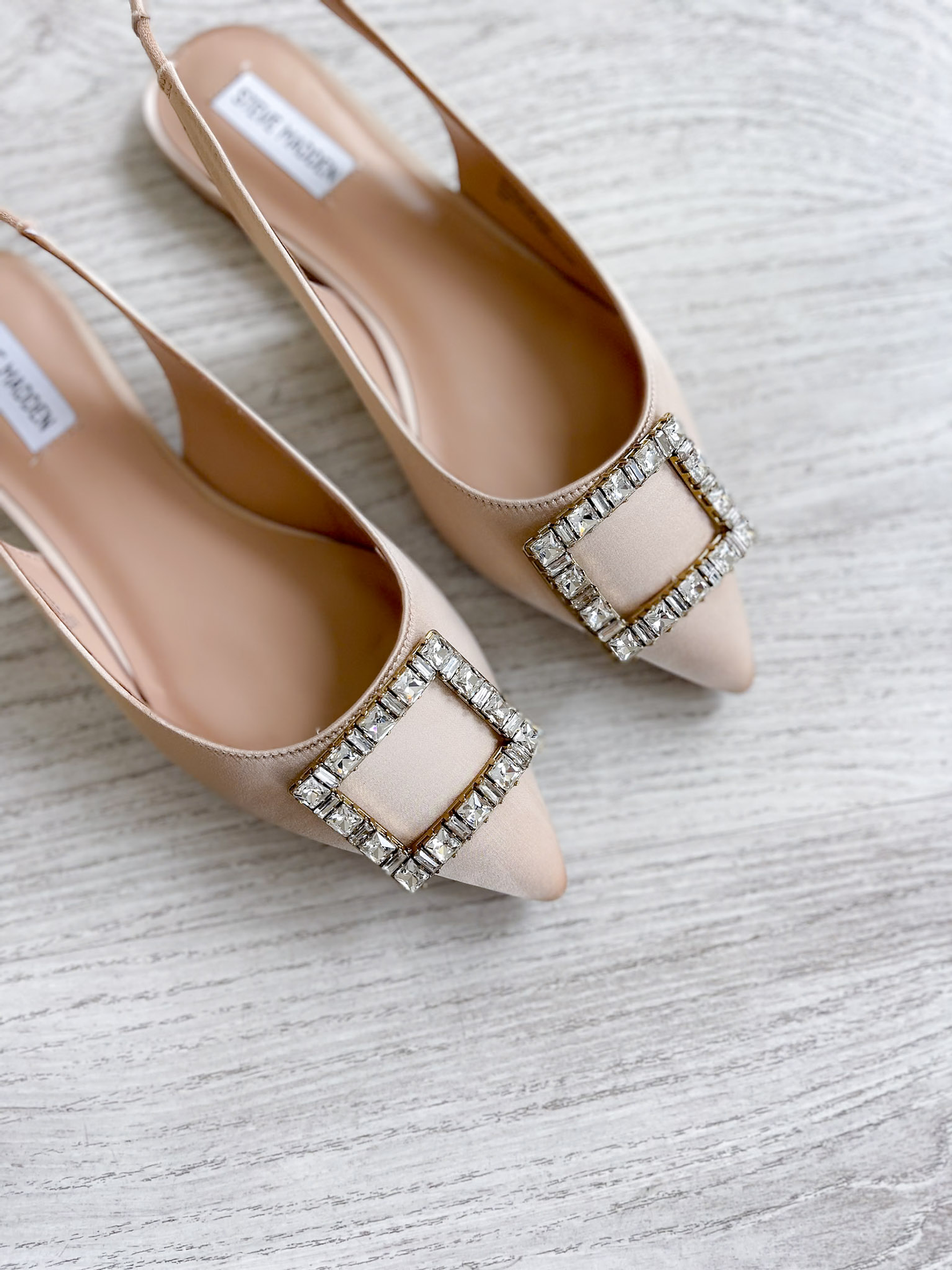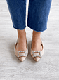 Sapatos em tecido acetinado com adorno na frente e elástico na traseira para ajustar