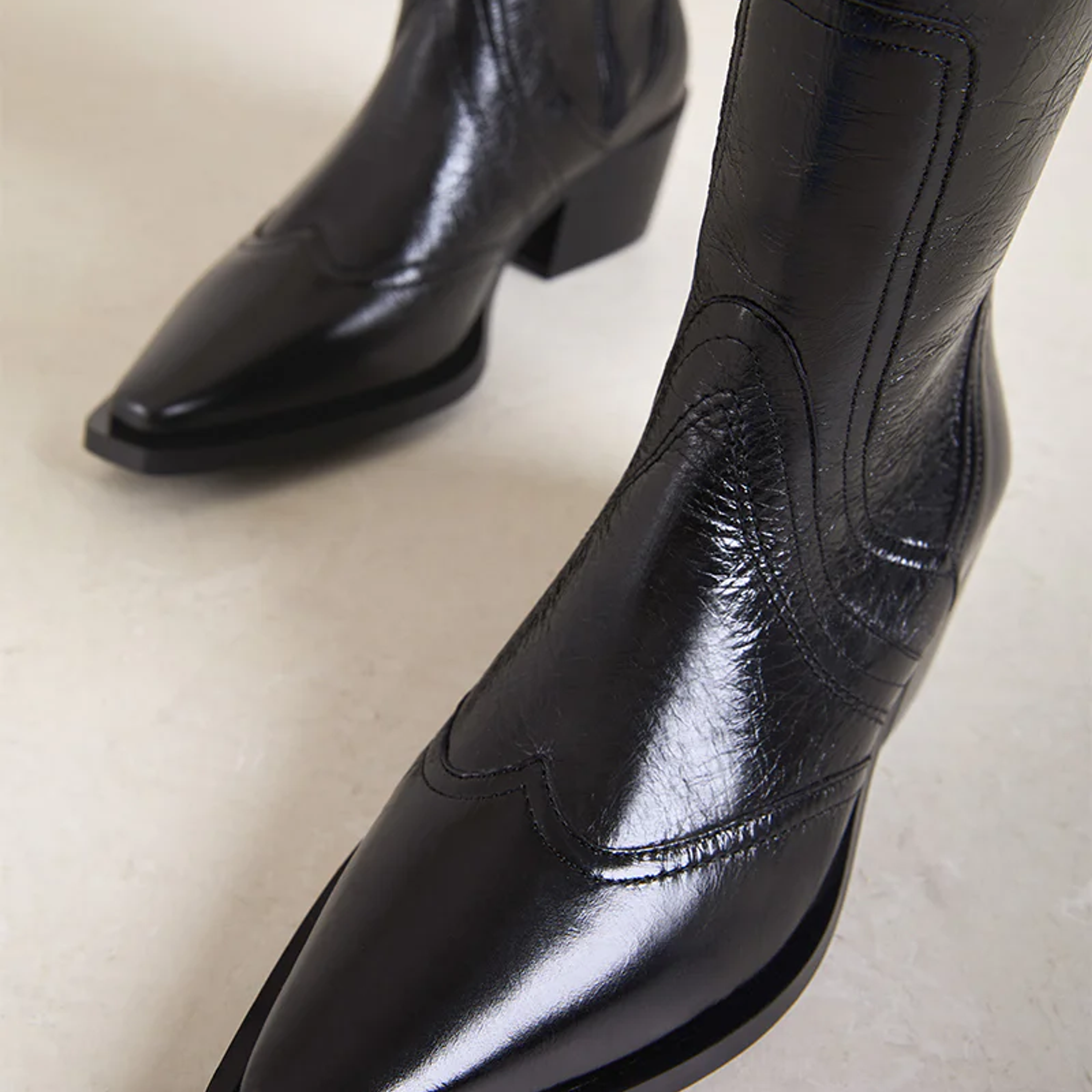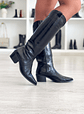 Botas de cano alto pretas, estilo texana com fecho no interior