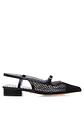 Sapatos rasos MariaMare em cor preta com fivela prateada, e renda