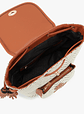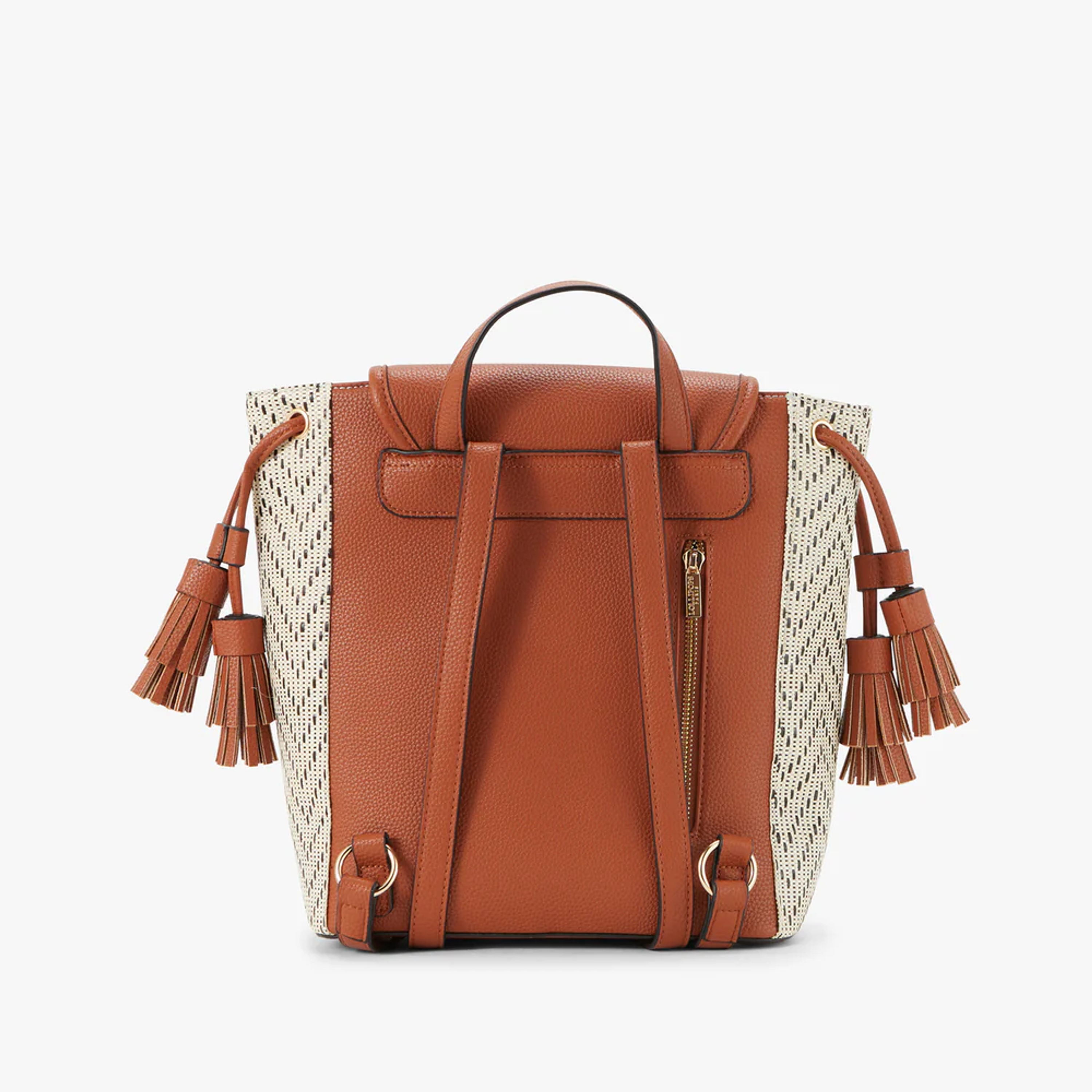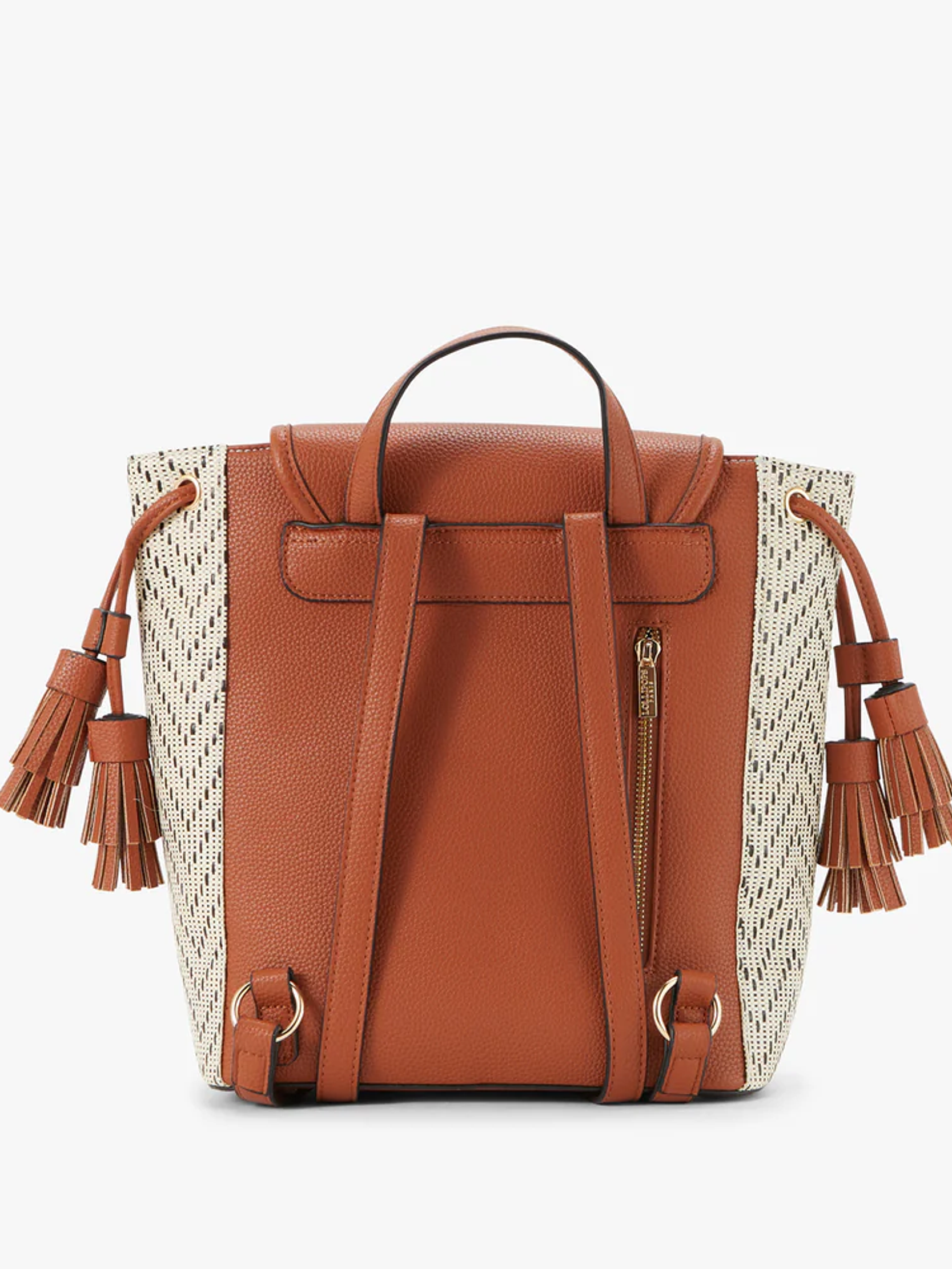 Mochila em cor camel e creme com detalhes dourados