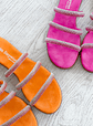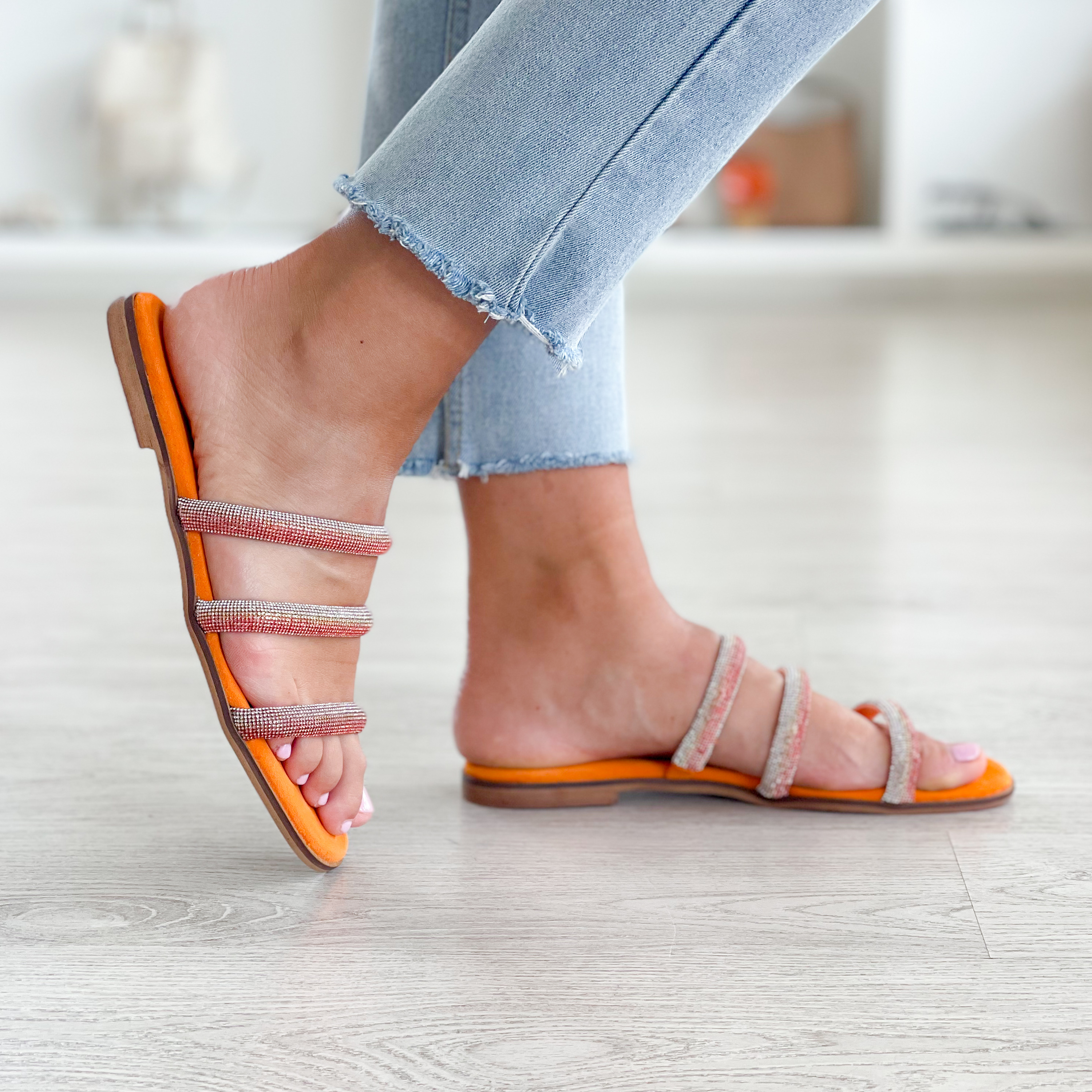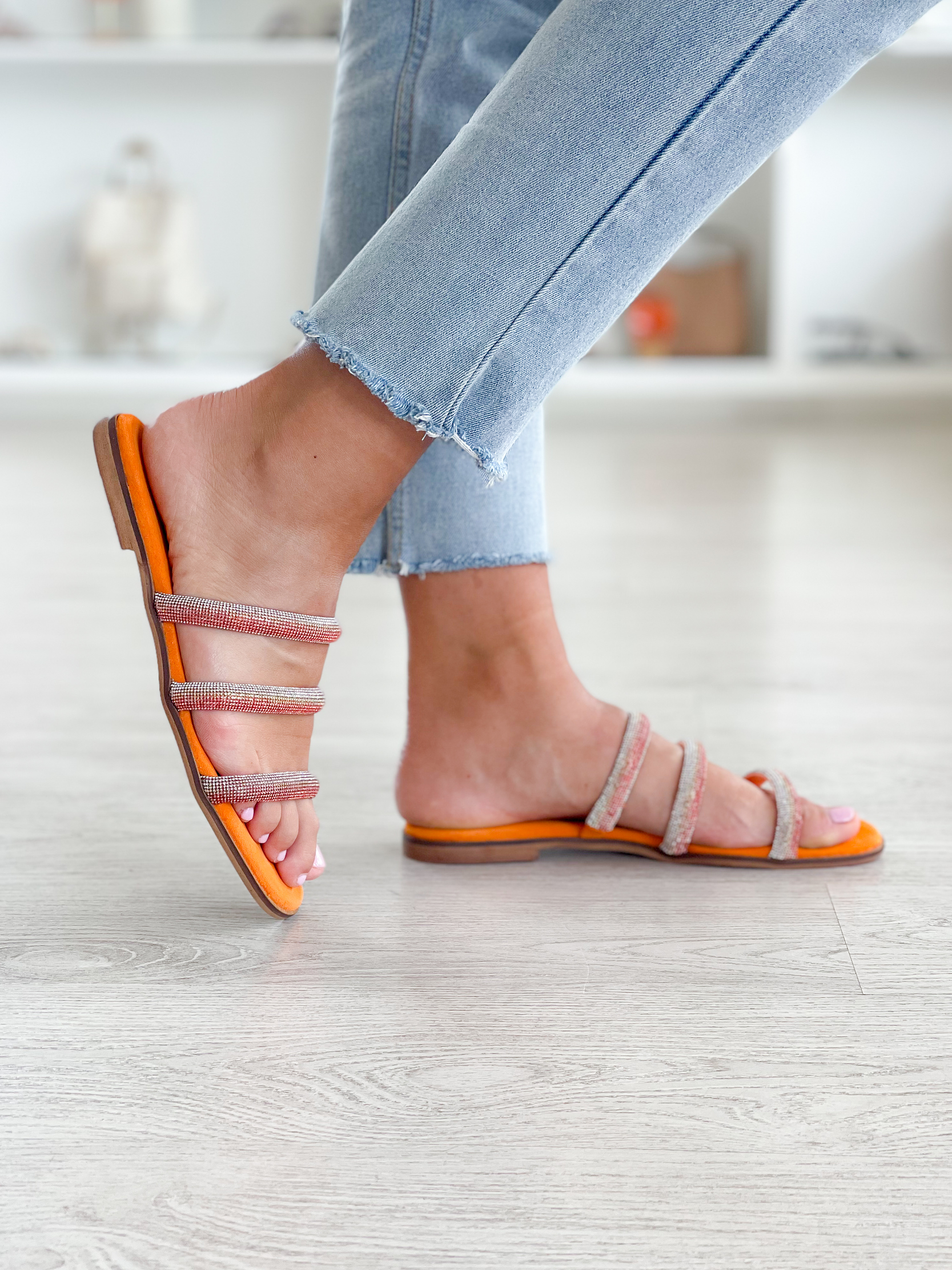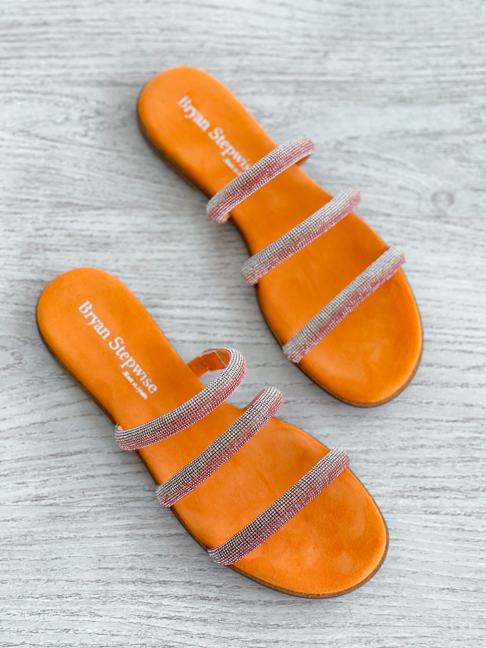 Chinelos laranja com tiras em brilhantes