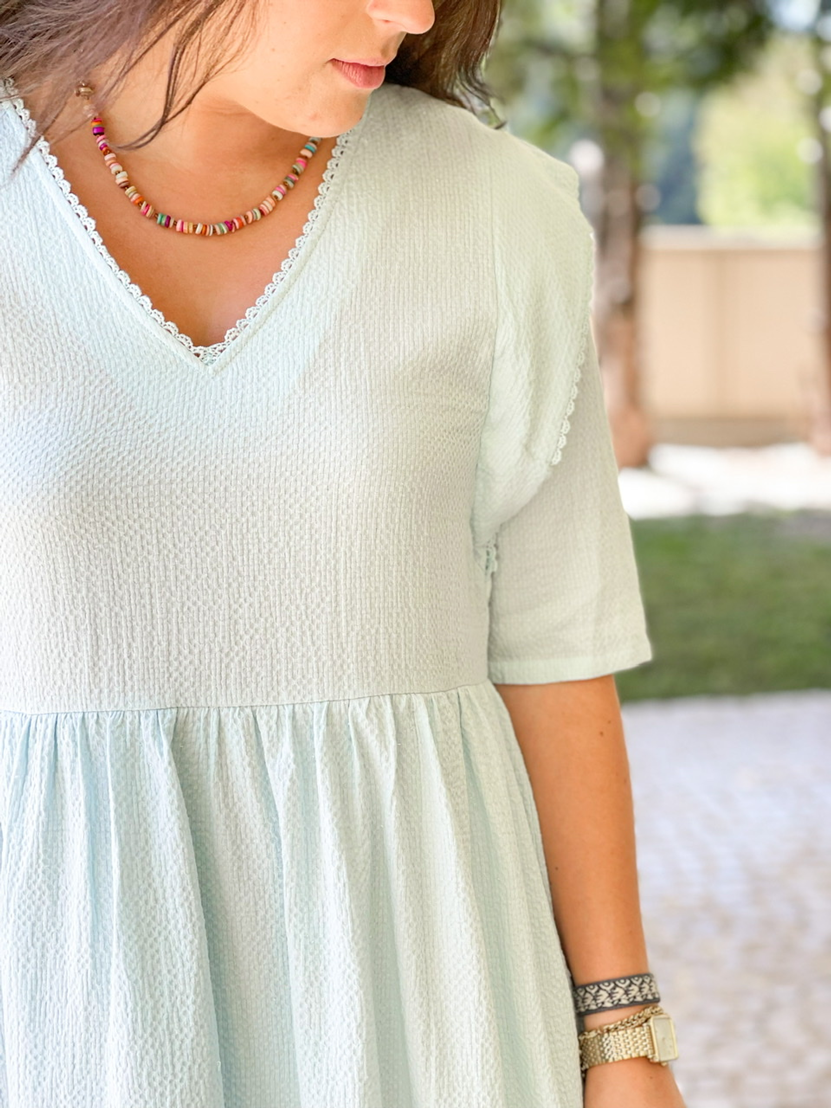 Vestido em azul bebé forrado